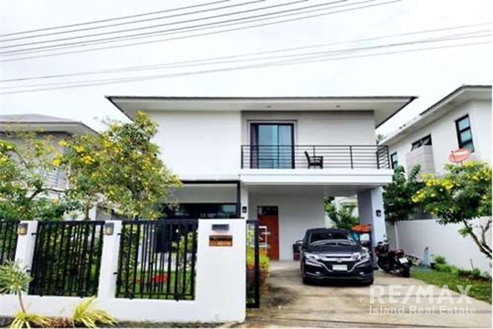 This stylish 2-storey single house is located in The Season Village, a well-maintained residential community in the north of Koh Samui. The village offers a peaceful living environment with beautifully kept common areas and 24-hour security, ideal for both residential living and investment.