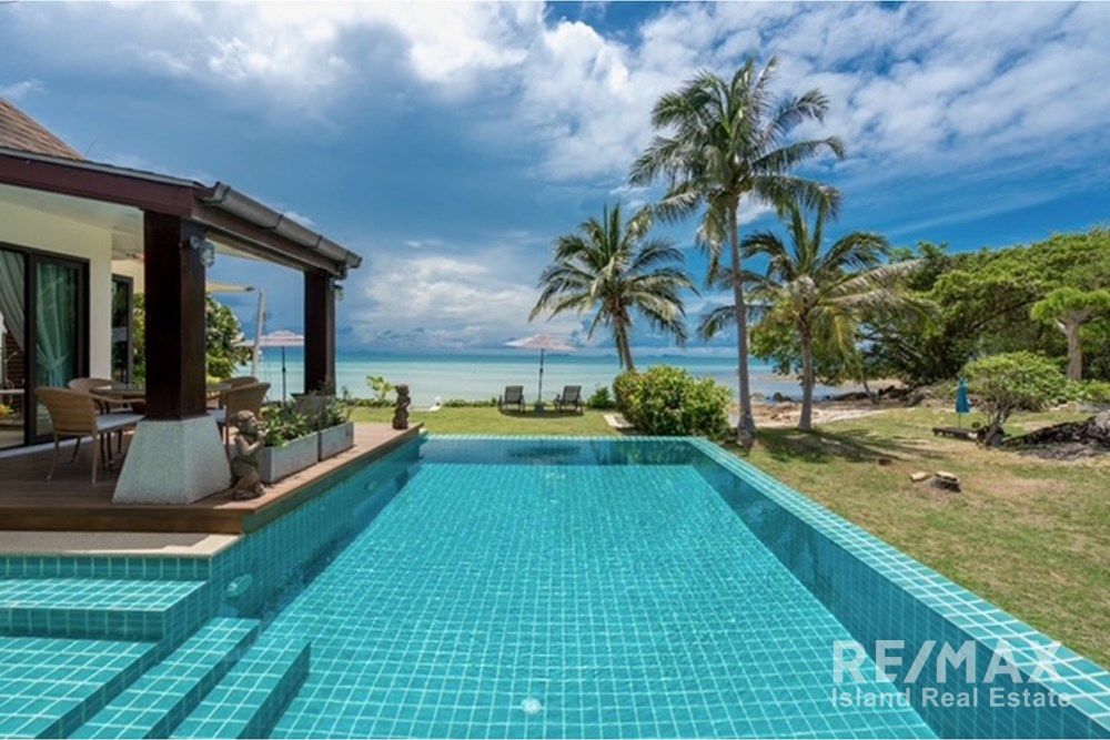 This villa is located directly on the beach with a beautiful garden and private pool, facing west with breathtaking sunset views, along a charming little beach. It offers four bedrooms: two with sea views, one overlooking a small tropical garden, and one ideally accommodating up to four children (two bunk beds). All bedrooms have en-suite bathrooms. There is a large open-plan living, dining, and kitchen area with views of the sea and pool.